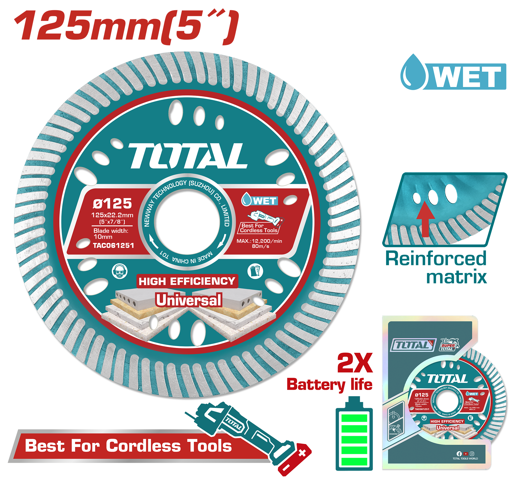 أسطوانة قص ألماس رفيع 125 ملم | 5 إنش – سماكة 1.6 ملم للرخام والباطون من توتال (TAC061251)