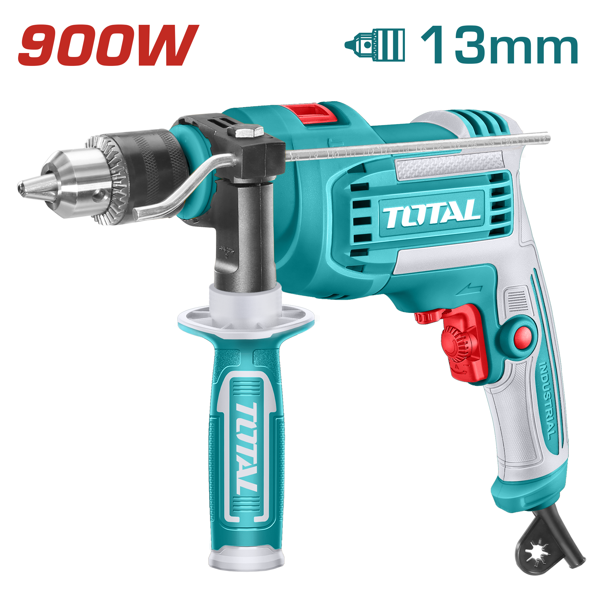 درل كهرباء 900 واط – سعة حفر 13 مم، سرعة متغيرة، مفتاح عكسي، وظيفة الطرق من توتال (TG1091366)