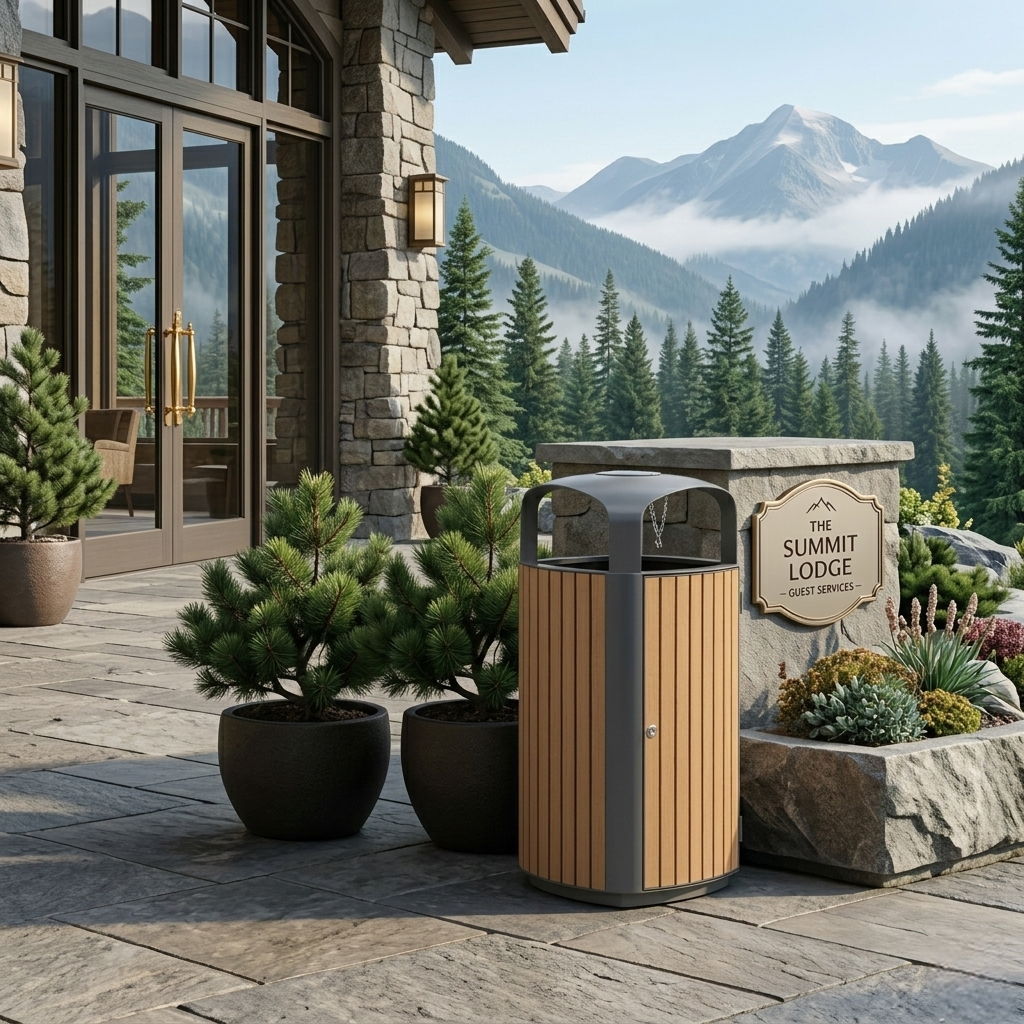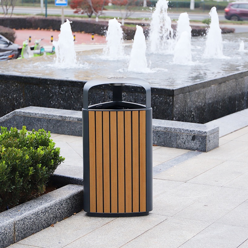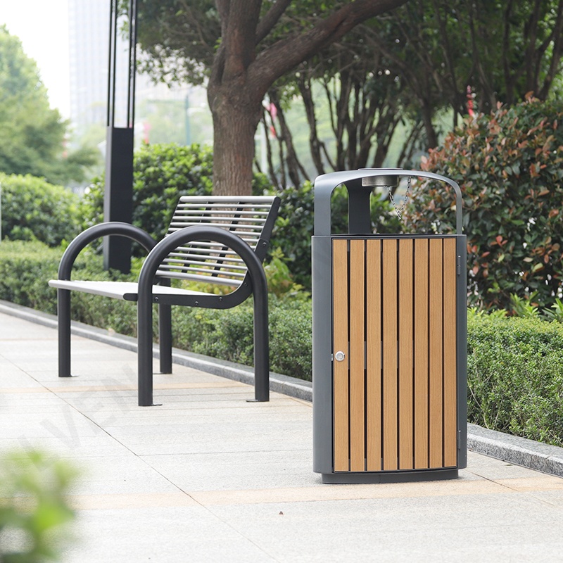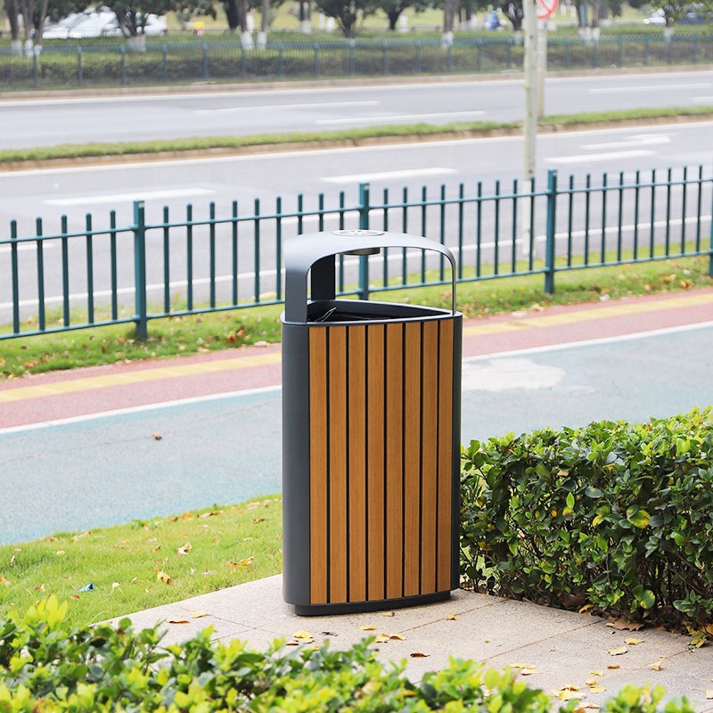 تُعد سلة نفايات خارجية بشرائح خشب WPC خيارًا أنيقًا ومتينًا للاستخدام في الحدائق والشوارع والمراكز التجارية والأماكن العامة. تتميز بهيكل قوي من الستانلس ستيل مع شرائح خشب صناعي WPC مقاومة للعوامل الجوية، مما يمنحها مظهرًا عصريًا وعمر استخدام طويل. يحتوي التصميم على باب أمامي مع قفل لتسهيل التنظيف وإخراج الحاوية الداخلية بسهولة.