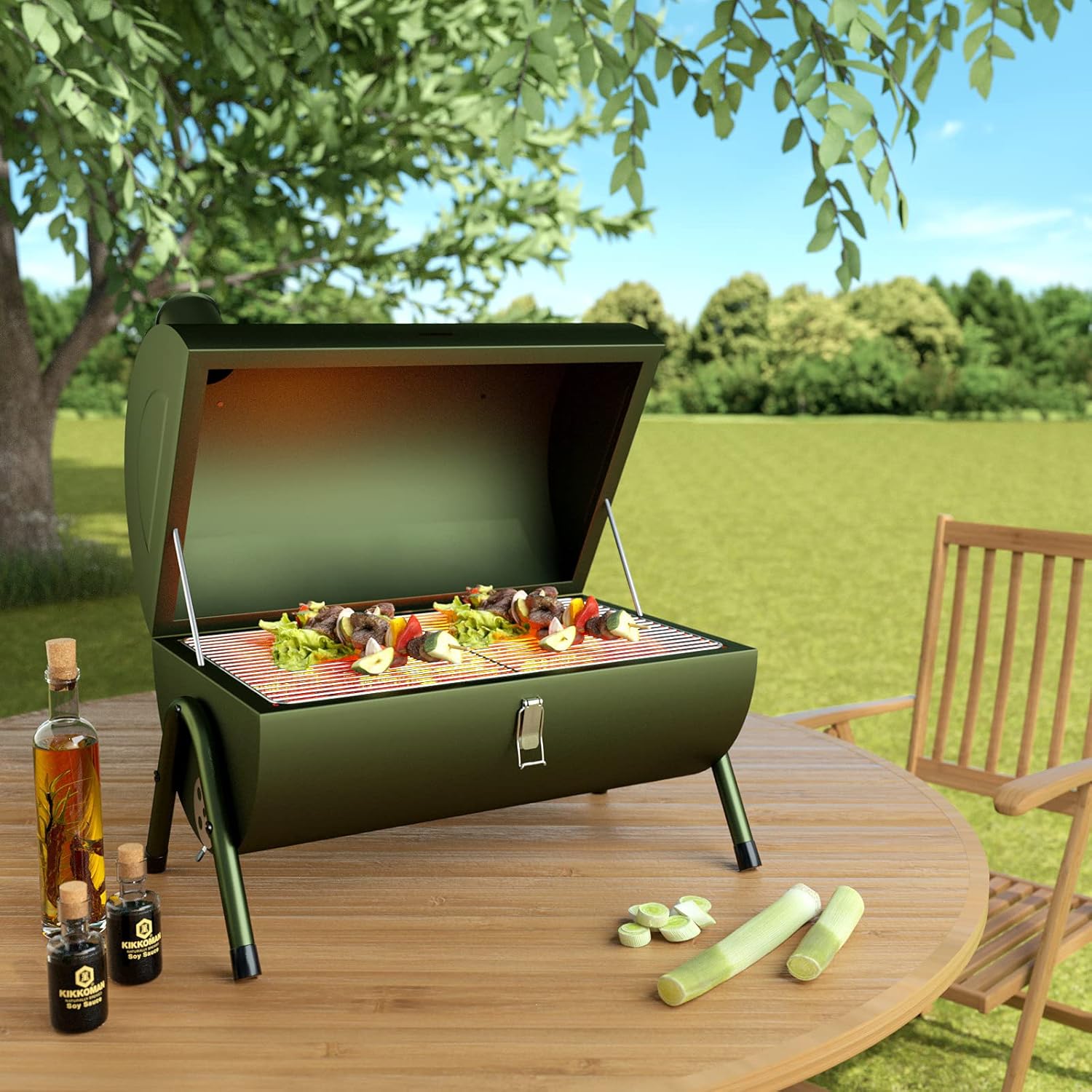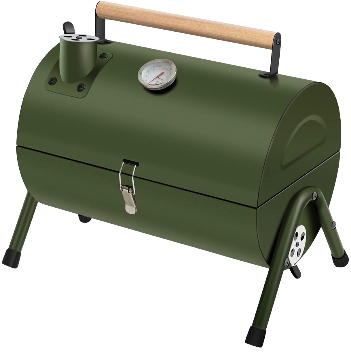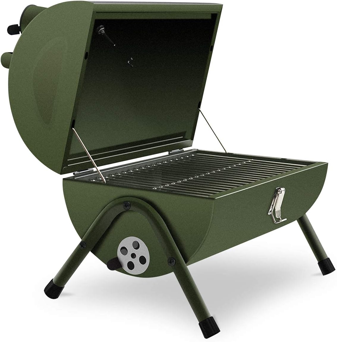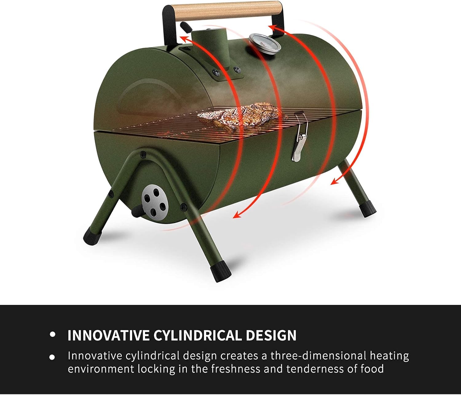 شواية فحم محمولة صغيرة قابلة للطي – تصميم أسطواني للشواء في الهواء الطلق باللون الأخضر