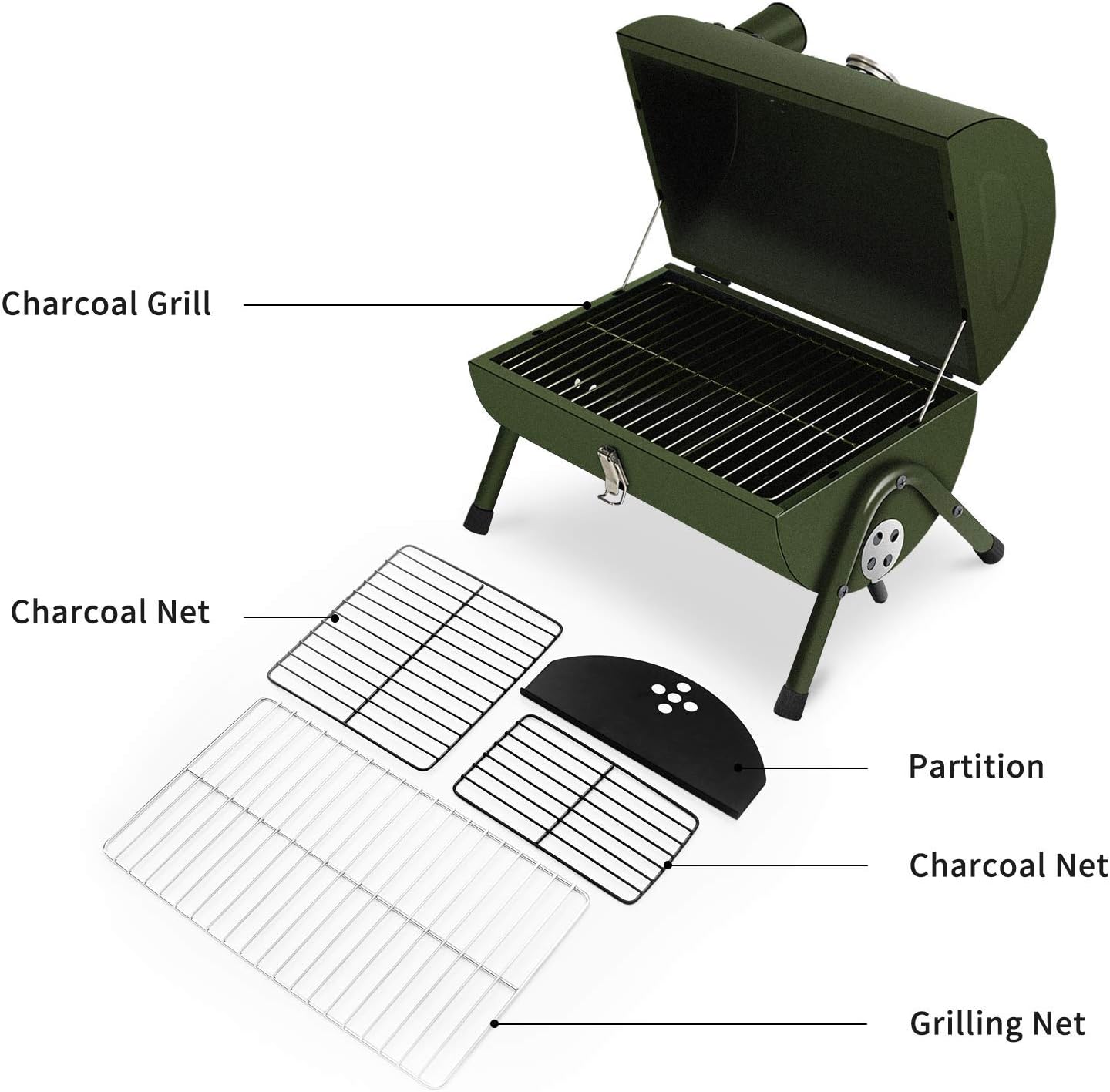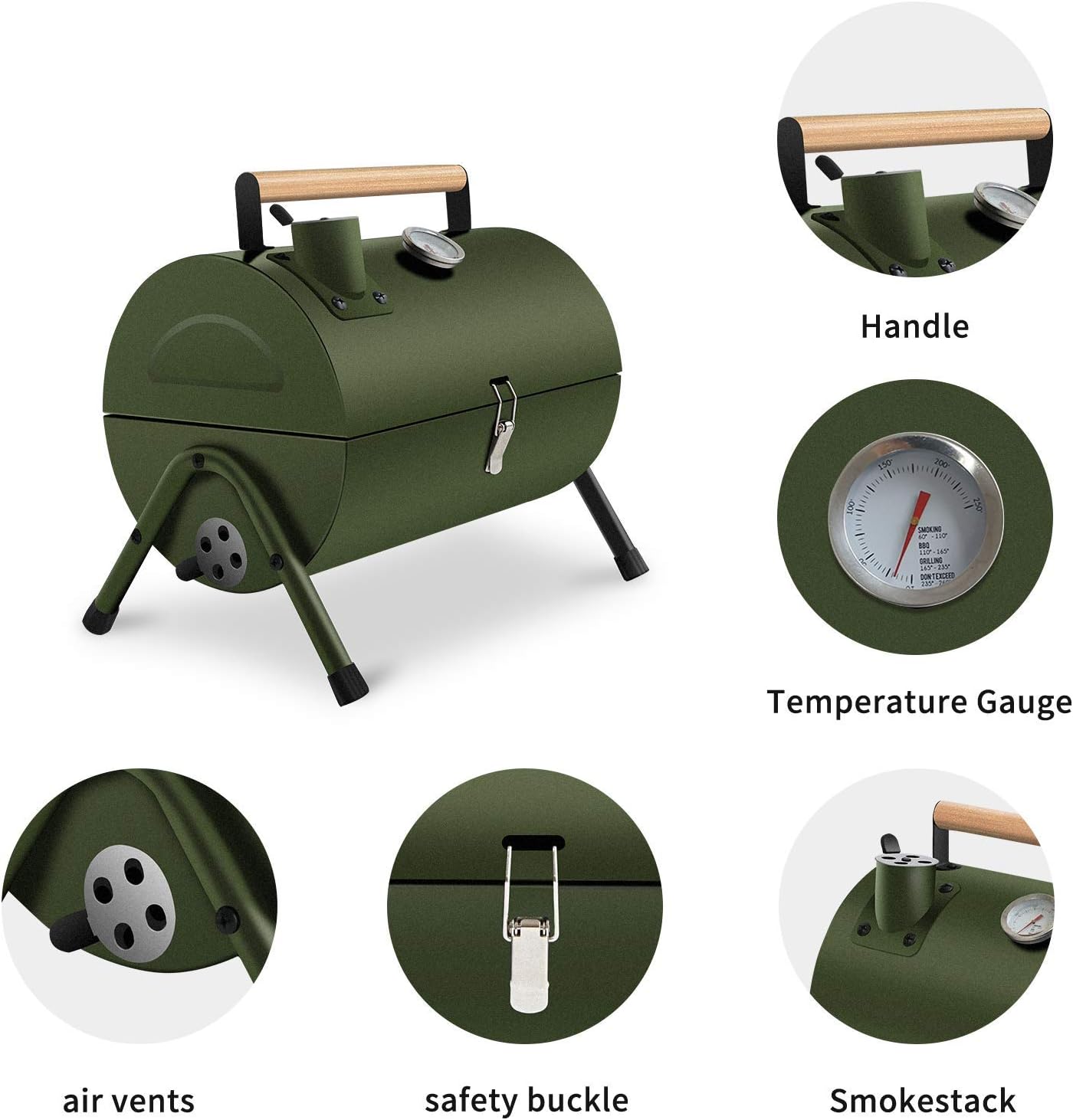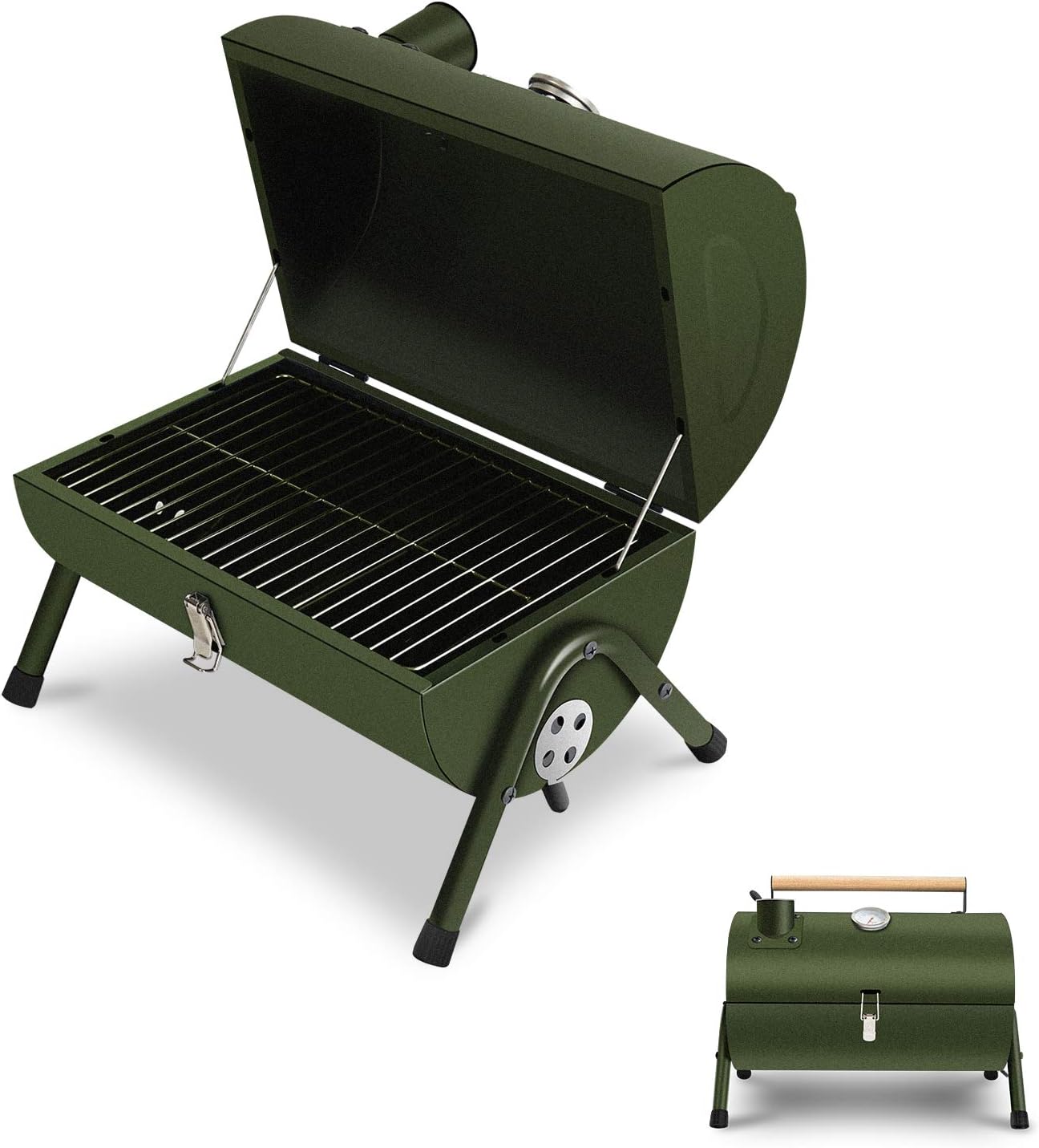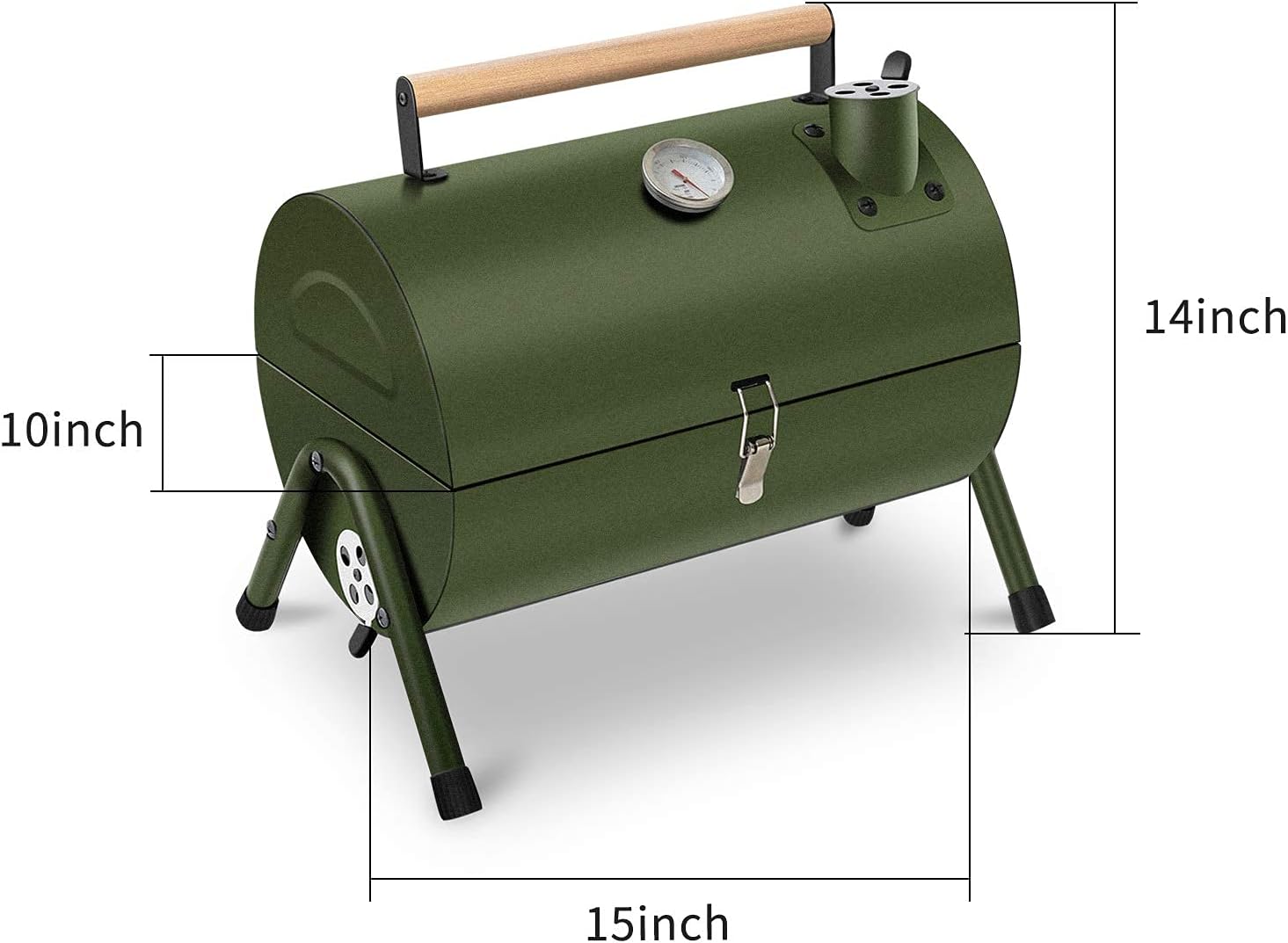 شواية فحم محمولة صغيرة قابلة للطي – تصميم أسطواني للشواء في الهواء الطلق باللون الأخضر