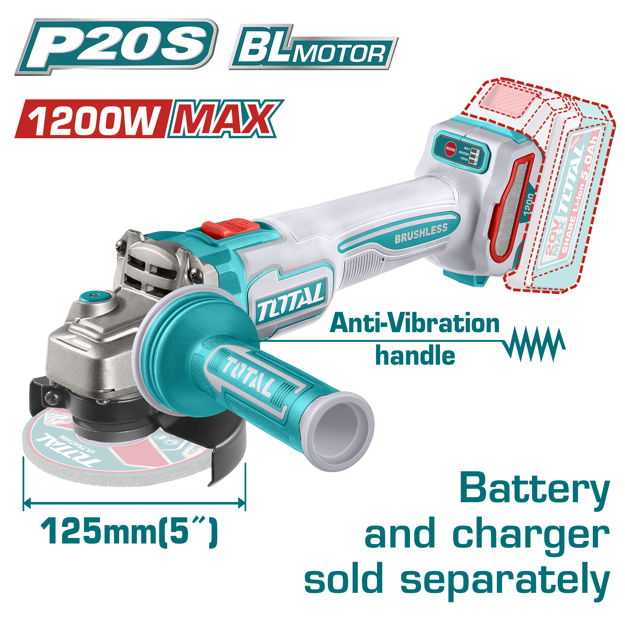 صاروخ شحن بدون فحمات 20 فولت 125 ملم | 5 إنش – بدون بطارية و شاحن من توتال (TAGLI212027)