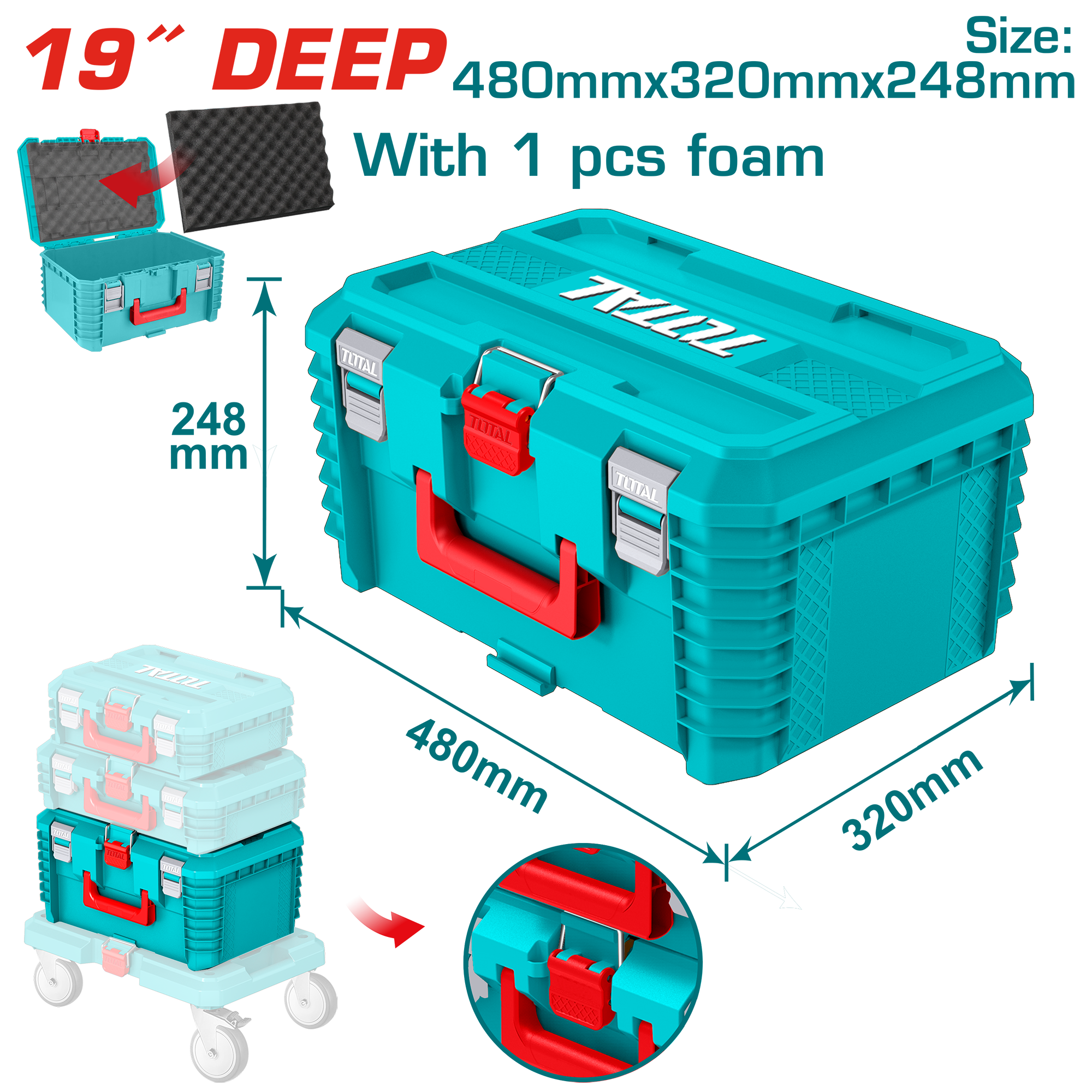 يُعد صندوق عدة بلاستيك قابل للتكديس مقاس 19 إنش خيارًا عمليًا لتنظيم وتخزين ونقل الأدوات بسهولة. مصنوع من بلاستيك PP المتين الذي يوفر حماية جيدة للأدوات مع وزن خفيف وسهولة في الحمل. يتيح التصميم القابل للتكديس ربط عدة صناديق معًا بسرعة وسهولة لتسهيل التخزين والنقل في الورش ومواقع العمل.