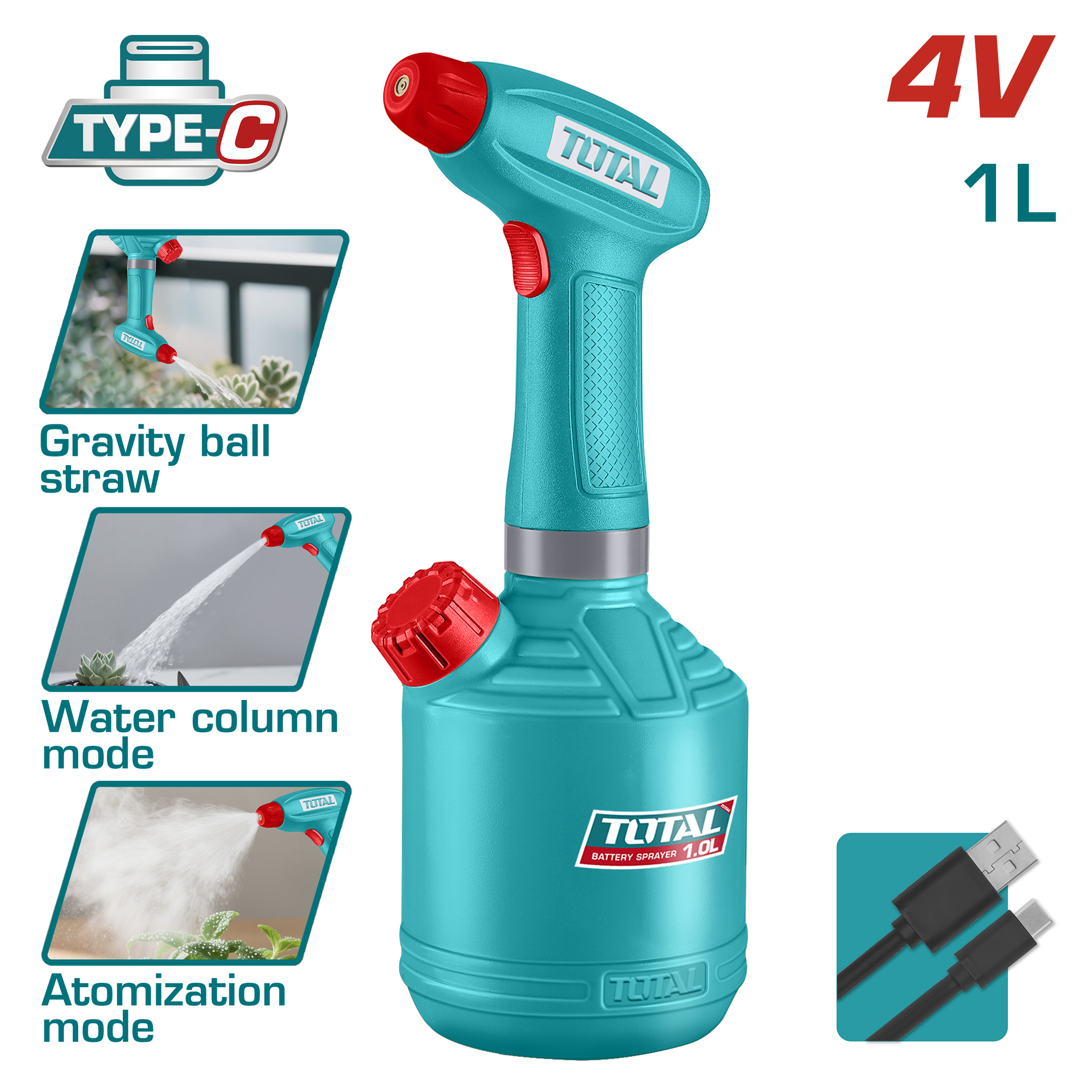 طرمبة رش شحن 1 لتر 4 فولت – استخدام حتى 90 دقيقة من توتال (TSPP3701)