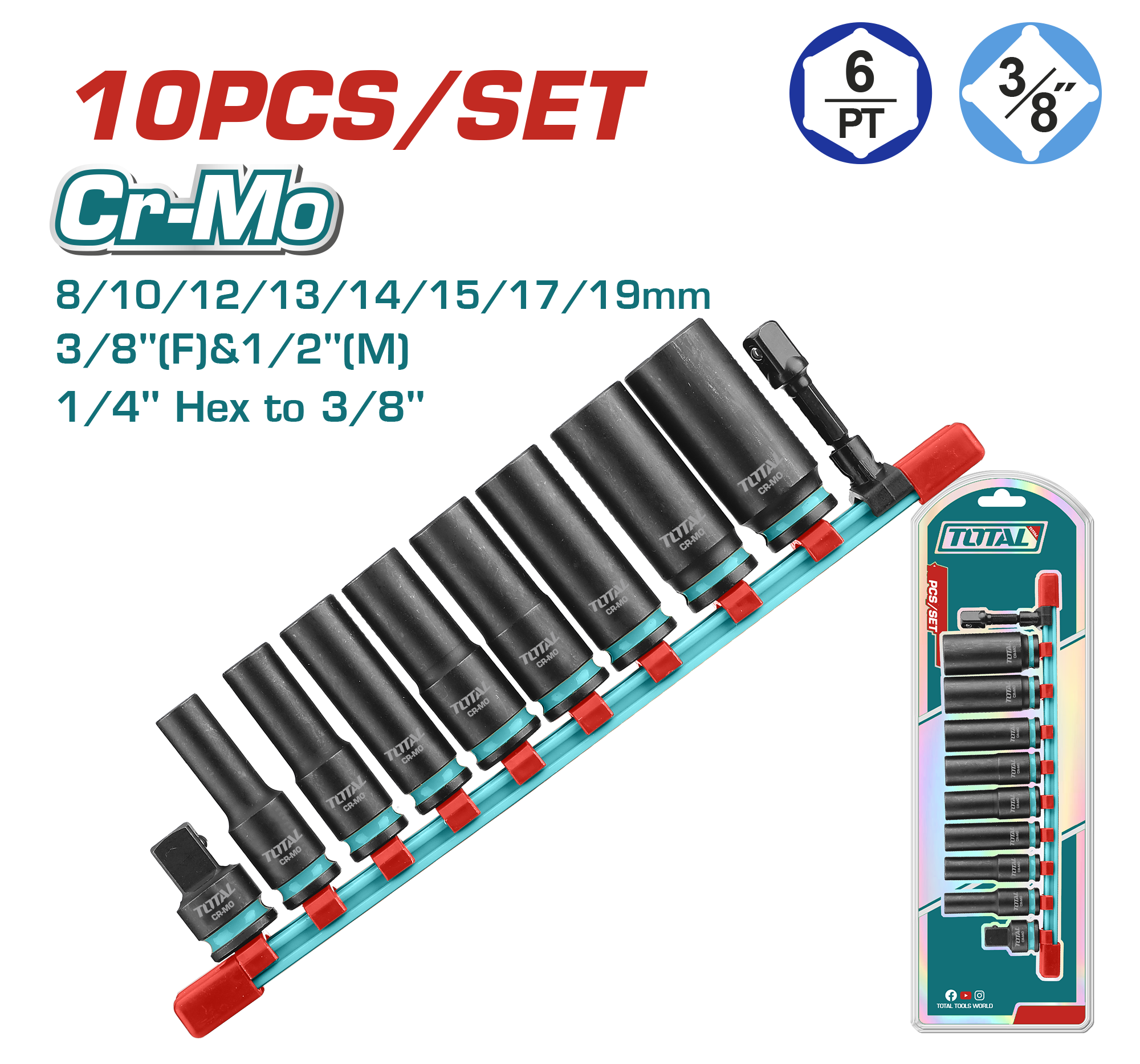 طقم بوكس طويل 3/8 إنش – 10 قطع من توتال (THKISD38106L)