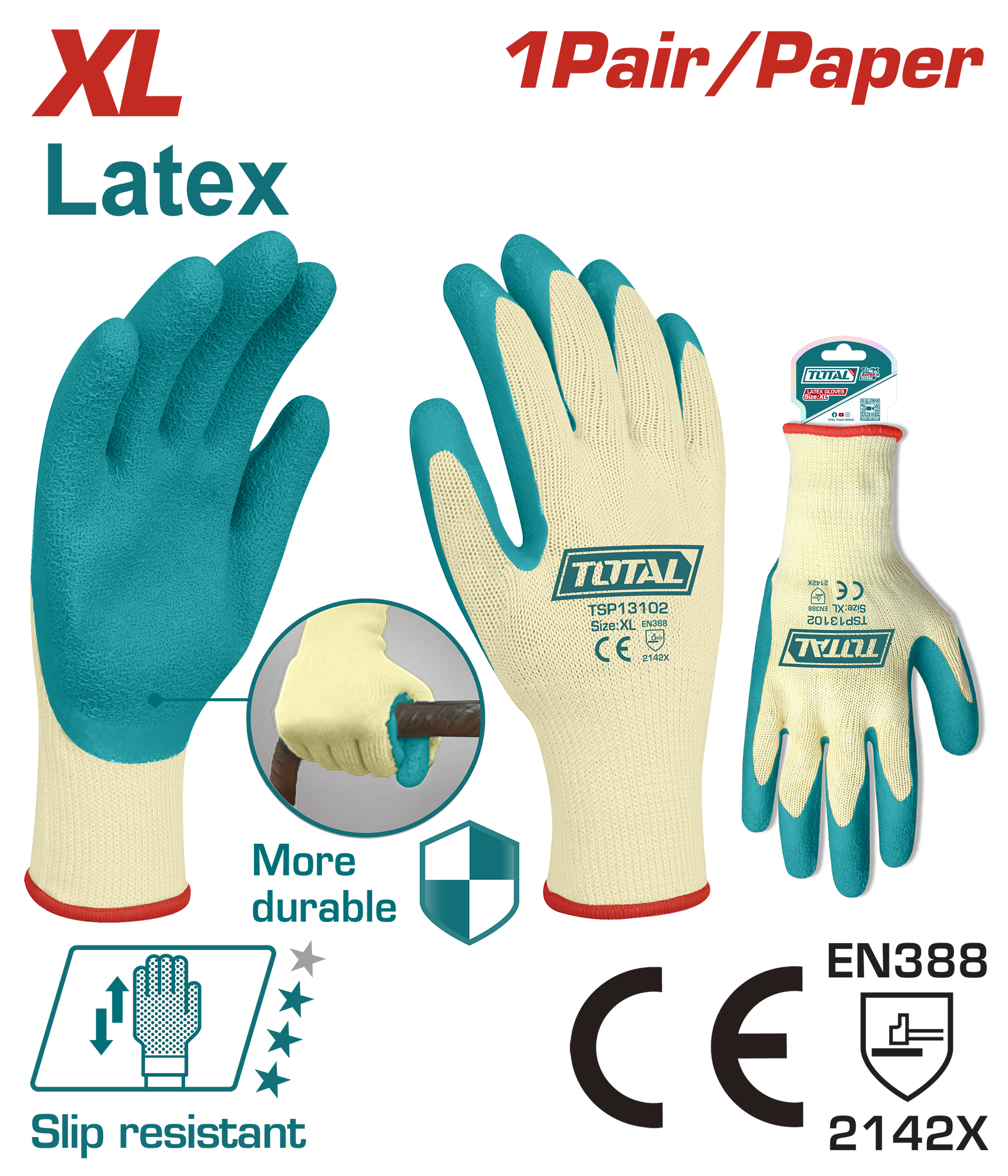 كفوف عمل لاتكس مقاس XL – مانعة للانزلاق من توتال (TSP13102)