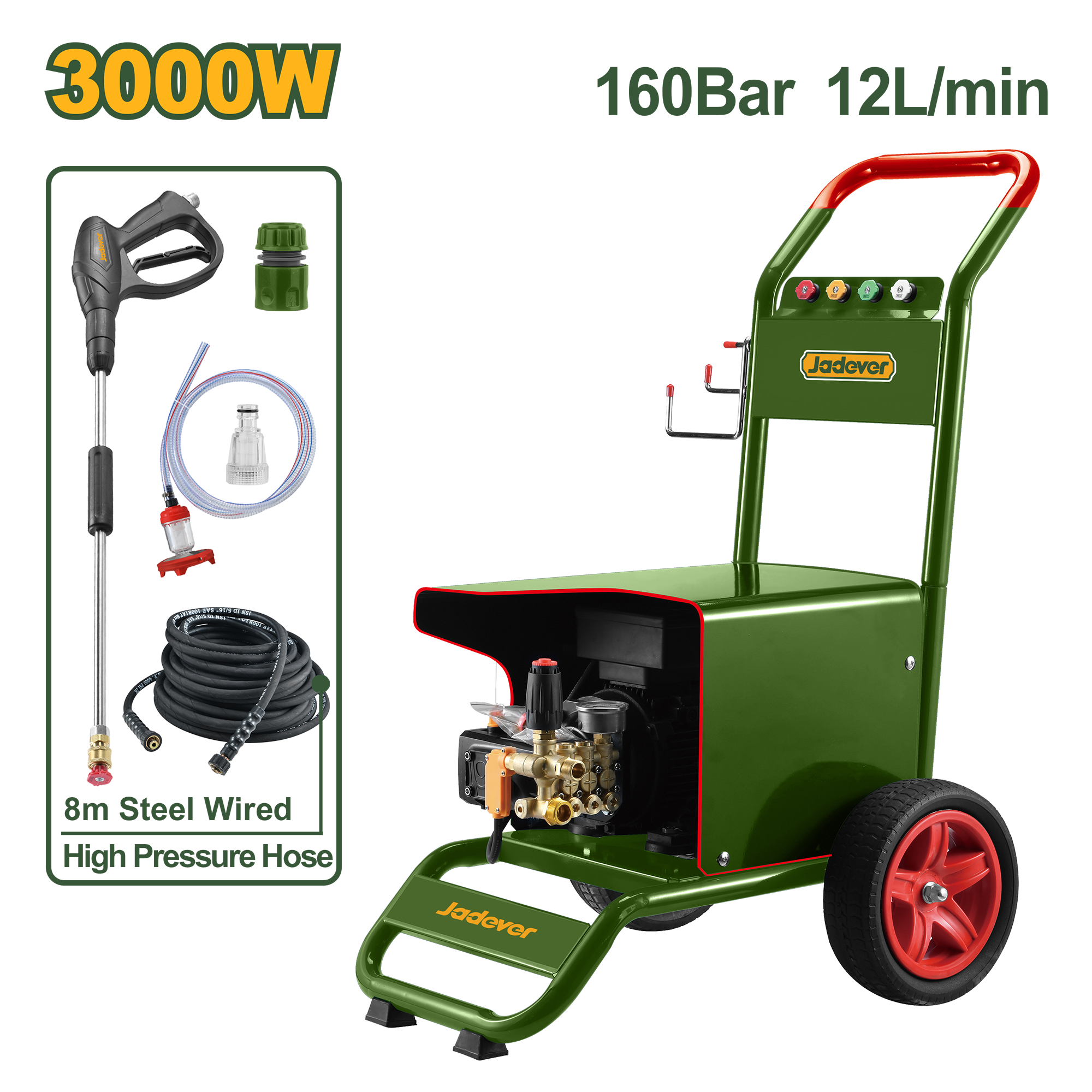 تقدّم ماكينة غسيل ضغط عالي للاستخدام التجاري قوة تنظيف هائلة بفضل ماتورها الحثّي بسلك نحاس وضغط يصل إلى 160بار، مما يجعلها مثالية للورش، محلات غسيل السيارات، والمهمات الشاقة. تدفّق الماء 12لتر/دقيقة يضمن تنظيفاً سريعاً وفعالاً، بينما يوفّر خرطوم الضغط المعدني بطول 12م سهولة في الحركة أثناء العمل.