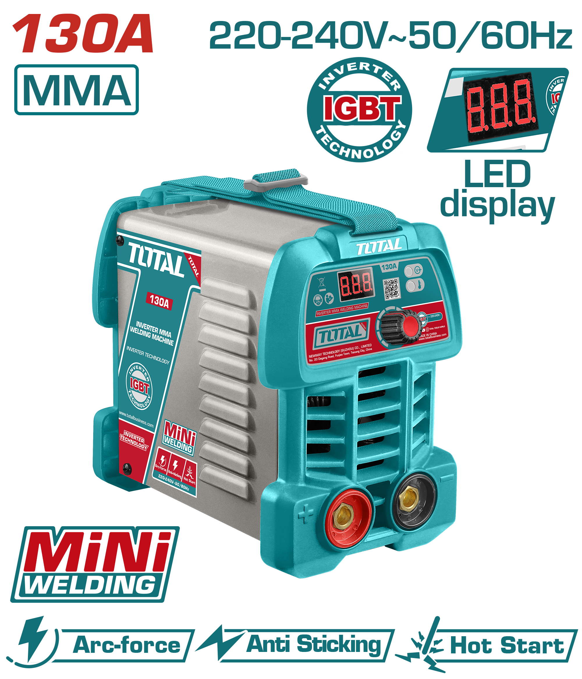 ماكينة لحام انفرتر 130 أمبير MMA – تقنية IGBT مع ملحقات كاملة من توتال (TW213049)