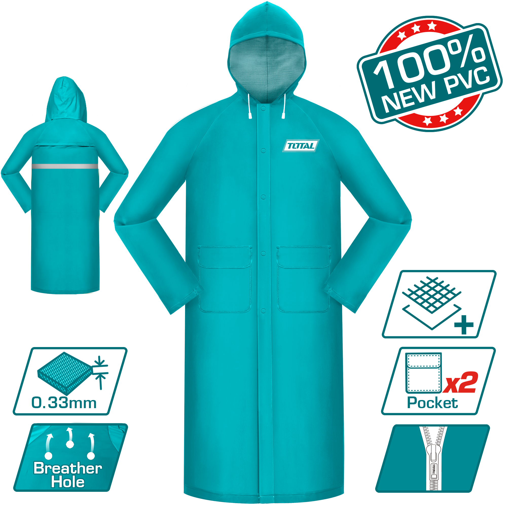 معطف مطر PVC + بوليستر – مقاوم للماء مع شريط عاكس من توتال (THTRC031)