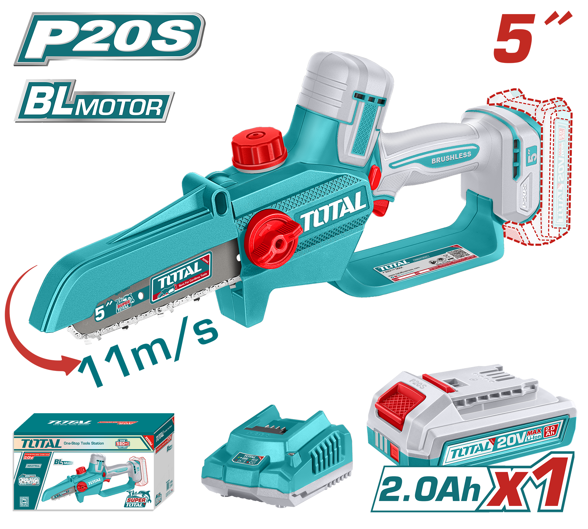 يُعد منشار تقليم شحن 20 فولت بدون فحمات مقاس 5 إنش أداة عملية وخفيفة لتقليم الأشجار وقص الأغصان والأعمال الخفيفة. يعمل بمحرك بدون فحمات (Brushless) ليمنحك أداءً قويًا وعمر استخدام أطول. بسرعة سلسلة تصل إلى 11 متر/ثانية مع نظام تشحيم تلقائي لضمان عمل سلس ونتائج دقيقة.