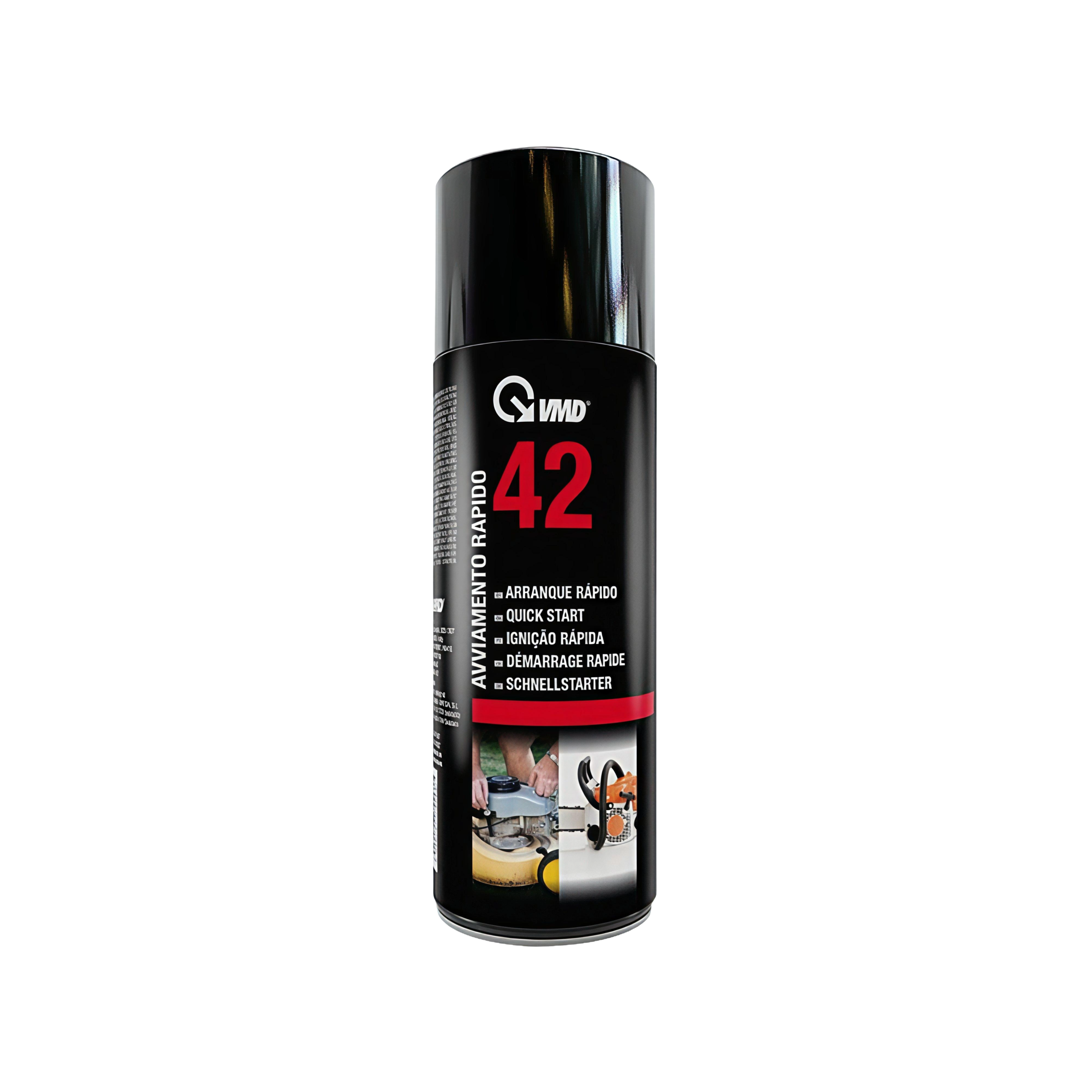 يُستخدم سبريه تشغيل سريع VMD 42 لتسهيل تشغيل محركات البنزين والديزل بسرعة وكفاءة، حتى في الأجواء الباردة. مناسب للمعدات الزراعية، معدات الإنشاء، القوارب، الآليات الثقيلة، جزازات العشب ومناشير السلسلة.