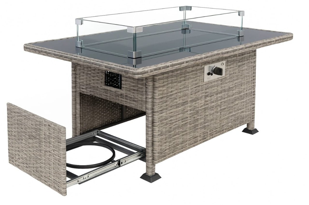 Add warmth and elegance to your outdoor space with the Heat-Resistant Fire Pit Table, featuring a sleek glass surface and sturdy gray steel base. Built for both performance and style, this modern fire pit table offers a stunning flame display through multicolored glass beads protected by a tempered glass windscreen. Its durable construction ensures long-lasting use, perfect for patios, terraces, and garden gatherings.