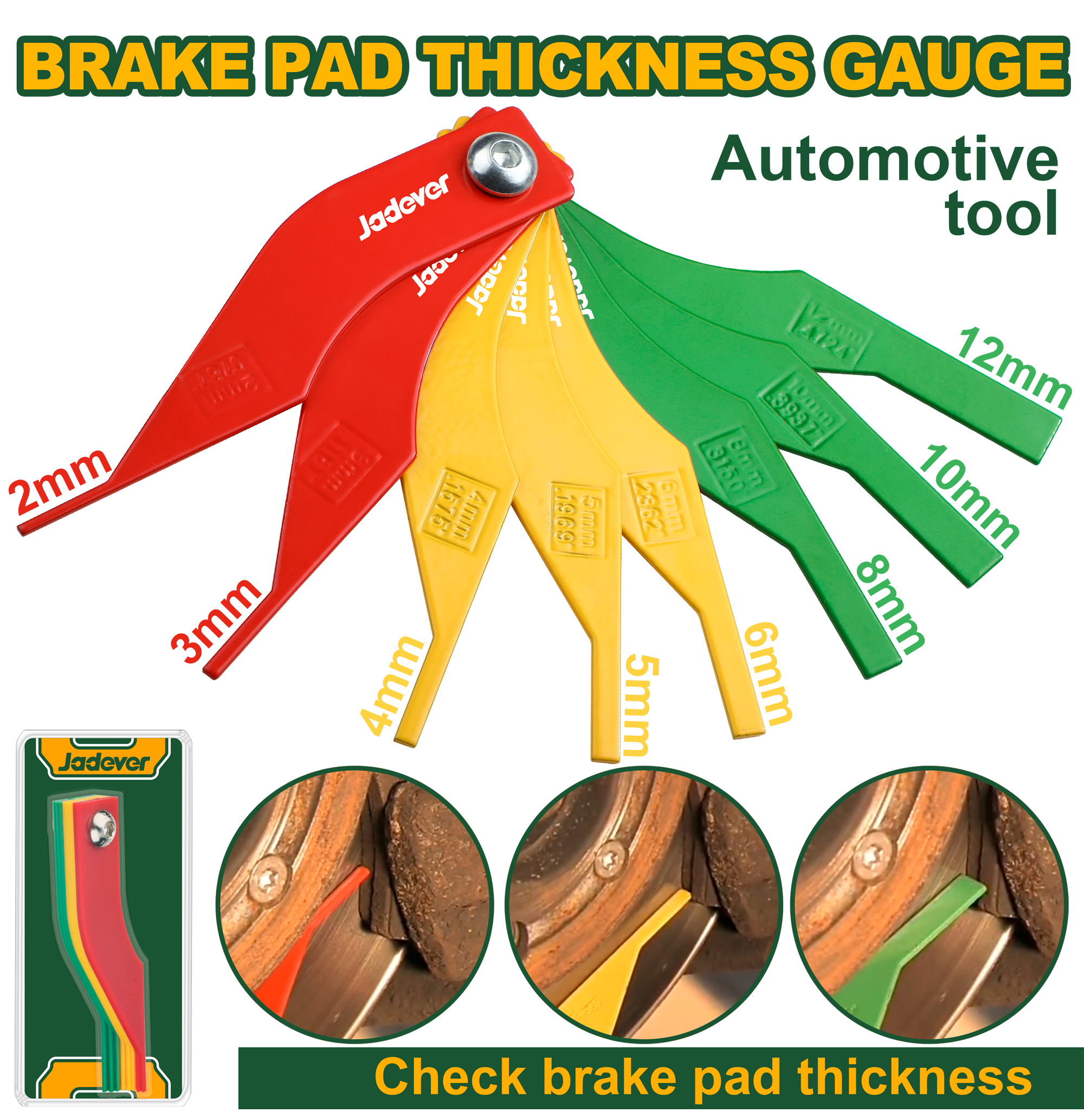 The Brake Pad Thickness Gauge is a fast and reliable tool for checking brake pad wear. With clear color-coded blades, it allows mechanics and car owners to instantly determine brake pad condition and decide if replacement is needed. Made from durable carbon steel with a sprayed finish for corrosion resistance.