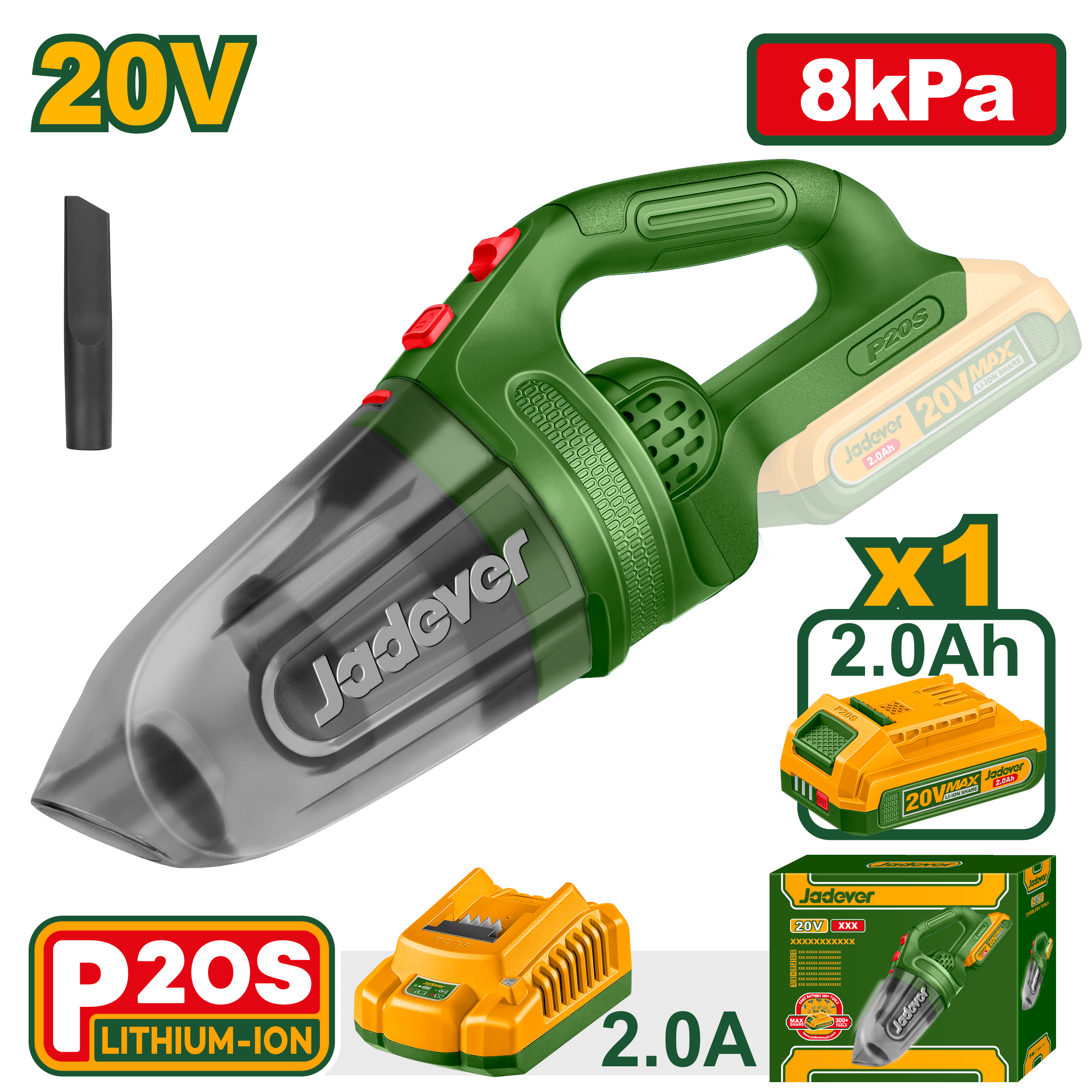 JADEVER Cordless Vacuum Cleaner 20V – Powerful Handheld Dust Cleaner with Battery & Charger (JDLV20201)