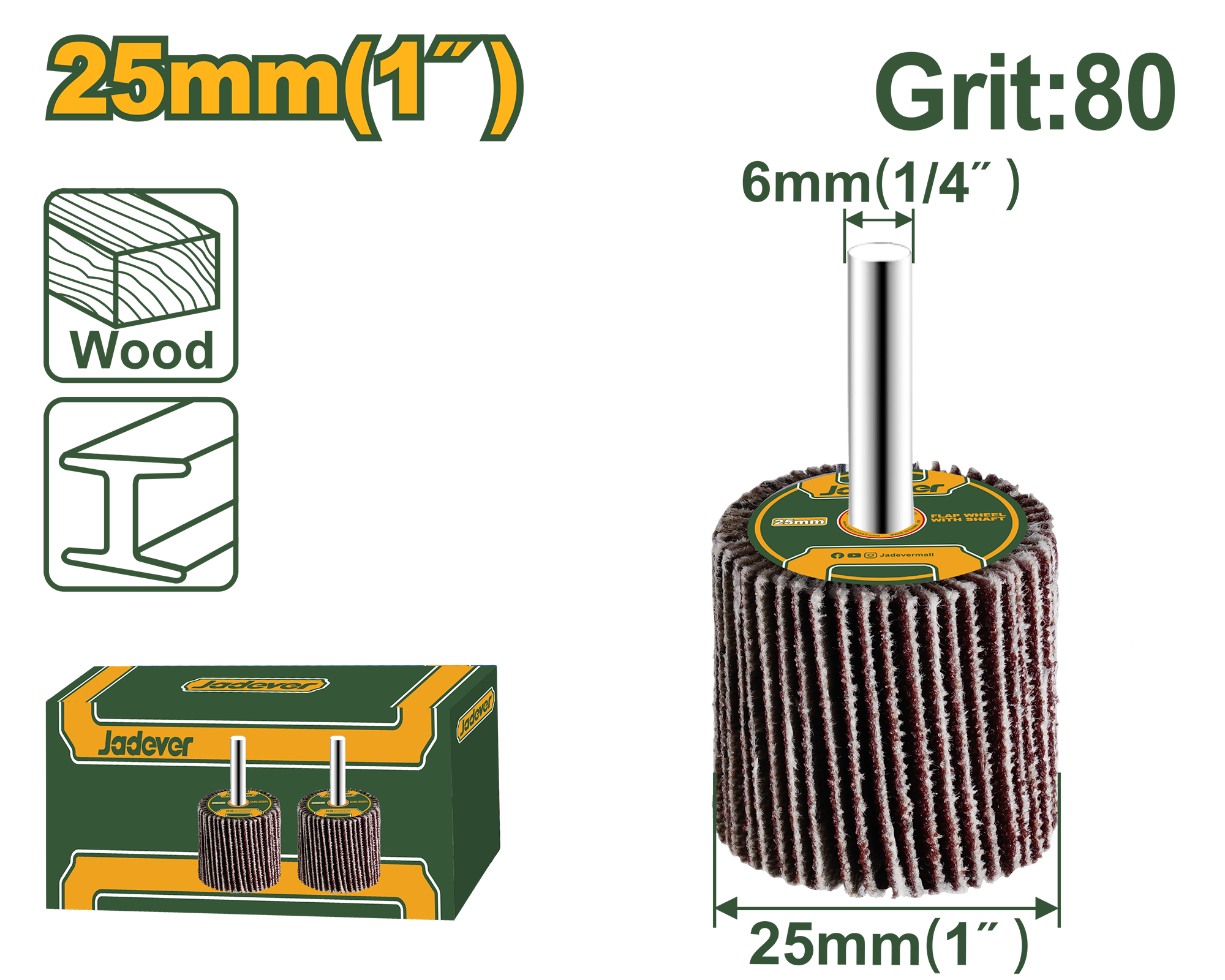 Perfect for precision sanding and finishing, this flap wheel with a shaft offers reliable performance on both metal and wood surfaces. With a 6mm diameter shank and 80# grit, it delivers smooth results for polishing, deburring, and surface preparation.