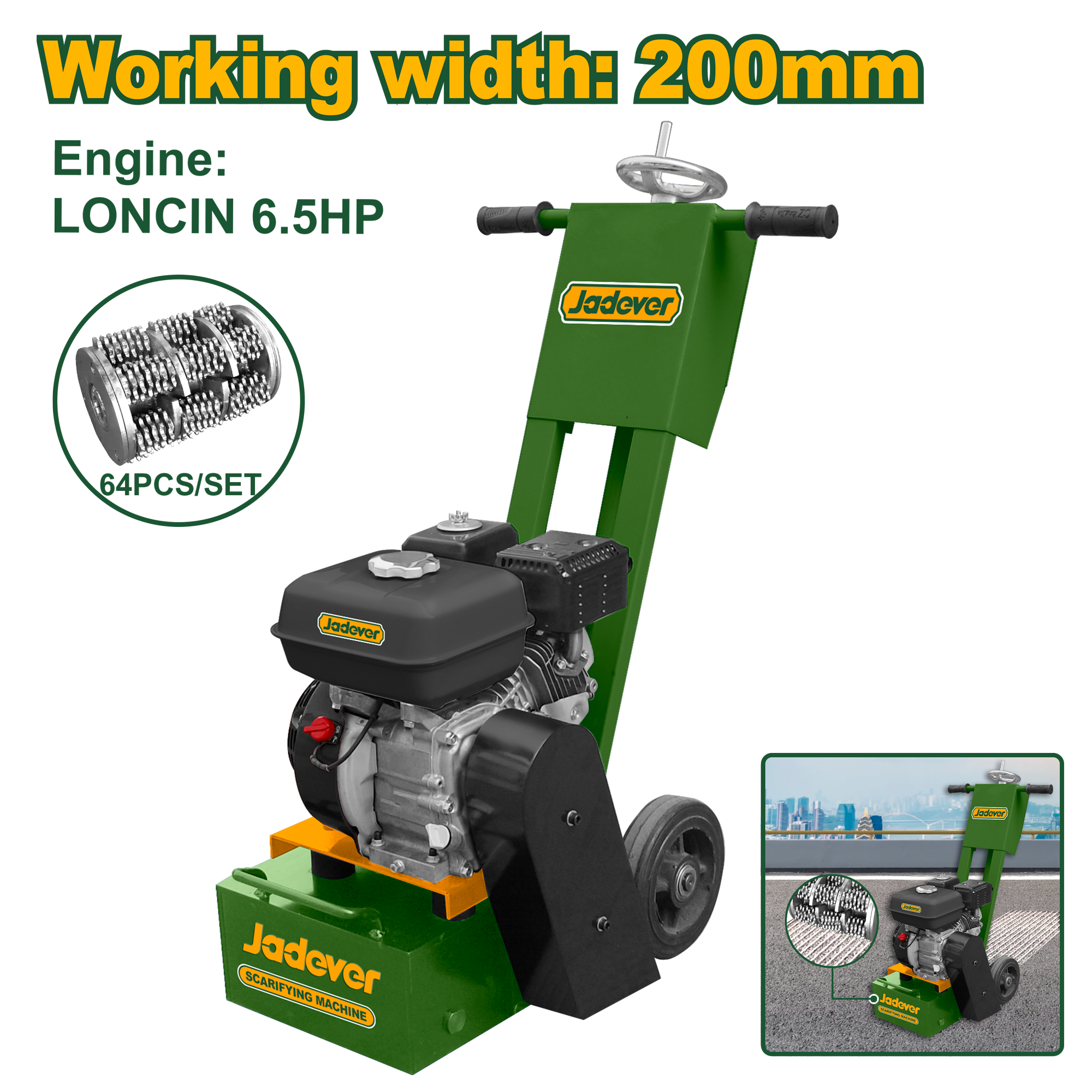 JADEVER Gasoline Scarifying Machine 200mm – Concrete Floor & Road Surface Scarifier, Loncin 6.5HP (JDSFM2A201)