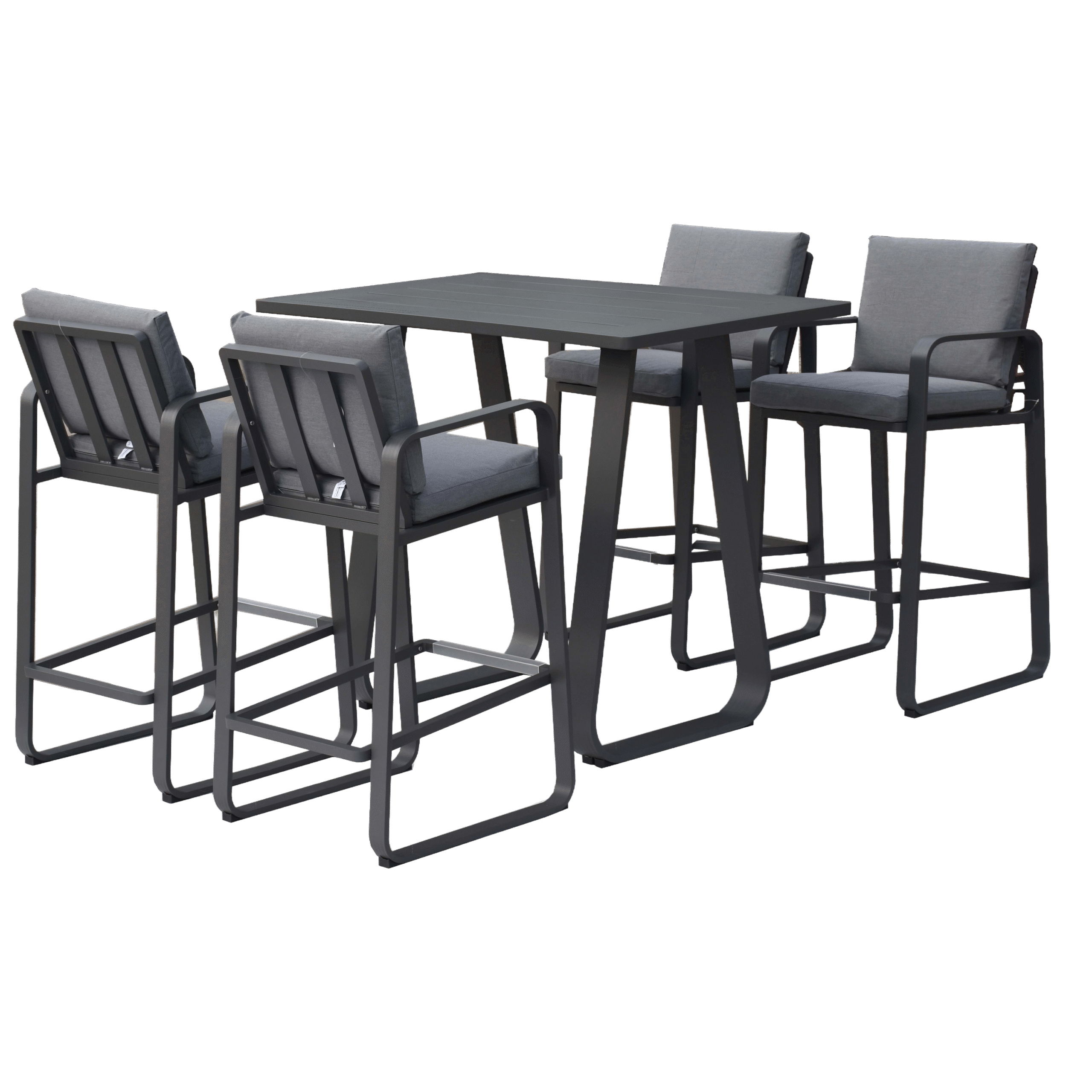 Outdoor Aluminum Bar Set – Weather-Resistant Bar Table & 4 Cushioned Bar Chairs, Powder-Coated Anthracite