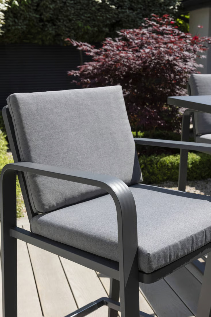 Certified with LOFA Assured Quality, all cushions meet trading standards and fire-safety regulations. The bar stools include thick, soft back and seat cushions covered in water-resistant outdoor fabric—ensuring comfort during long hours of outdoor lounging, dining, or entertaining.
