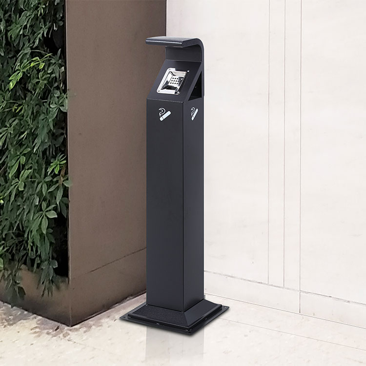 The Outdoor Smoking Ashtray Bin is a sleek and practical solution for cigarette disposal in public areas such as entrances, offices, malls, hotels, and outdoor smoking zones. Constructed from durable galvanized steel, it offers strong corrosion resistance and long-term outdoor use. The slim vertical design saves space while providing a dedicated ashtray and small internal liner for collecting cigarette butts. The unit can also be fixed to the floor to prevent theft and improve stability in public locations.