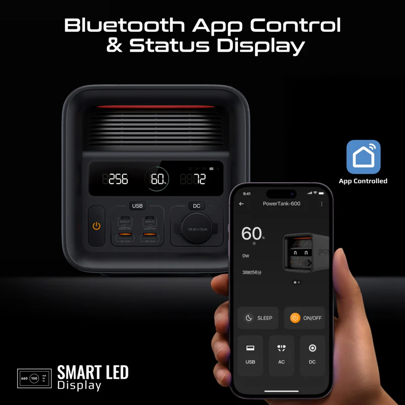 The PROMATE PowerTank-600 Portable Power Station 600W is a compact and powerful energy solution designed for outdoor adventures, emergencies, and off-grid use. Equipped with a high-capacity 161000mAh LiFePO4 battery, it delivers long-lasting and ultra-safe performance with over 4500 charge cycles. With the ability to power up to 8 devices simultaneously, including AC outlets, USB ports, DC output, and wireless charging, it ensures maximum versatility. Fast charging in just 1.8 hours and smart control via Bluetooth app connectivity make it a reliable and modern portable power companion.