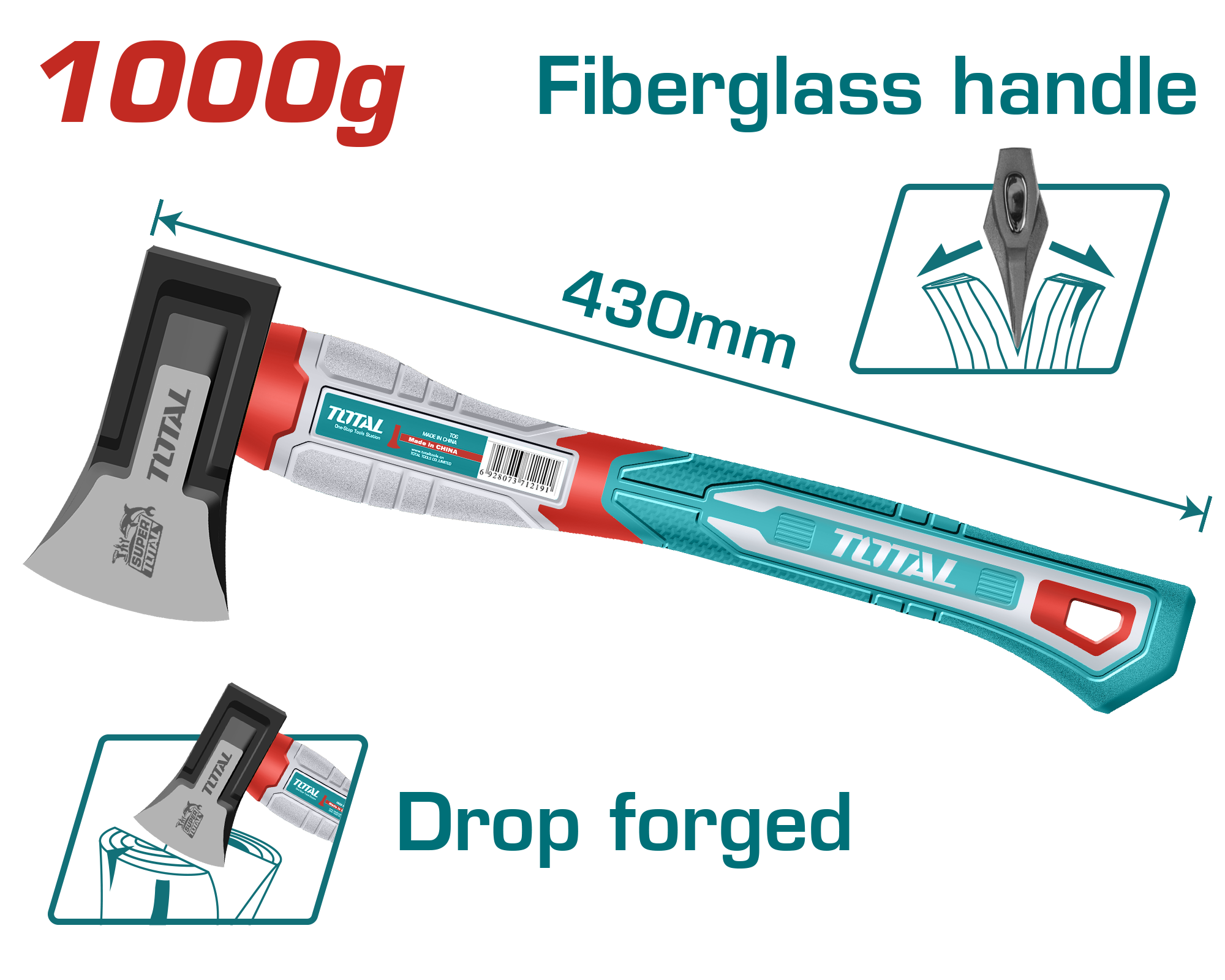 The strong fibreglass handle with a three-colour design ensures a comfortable and secure grip, making the axe easy to control during heavy use. Packed by label for simple storage and display.