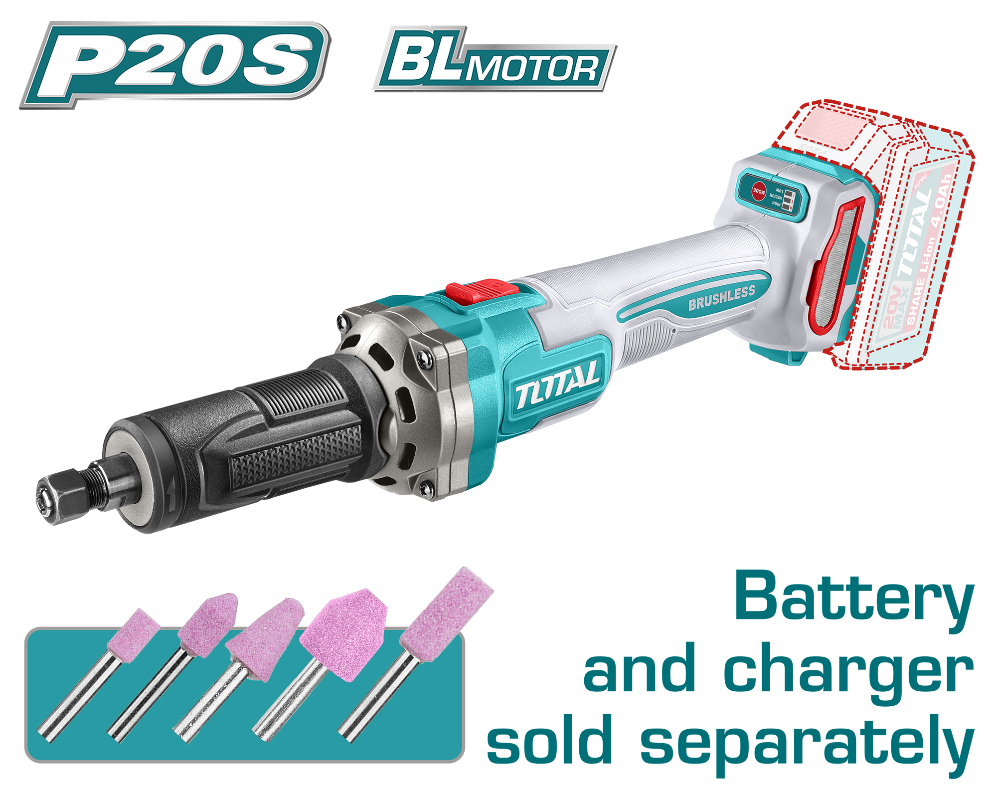 TOTAL Cordless Die Grinder 20V Brushless Variable Speed – Battery & Charger Sold Separately (TDGLI2001)