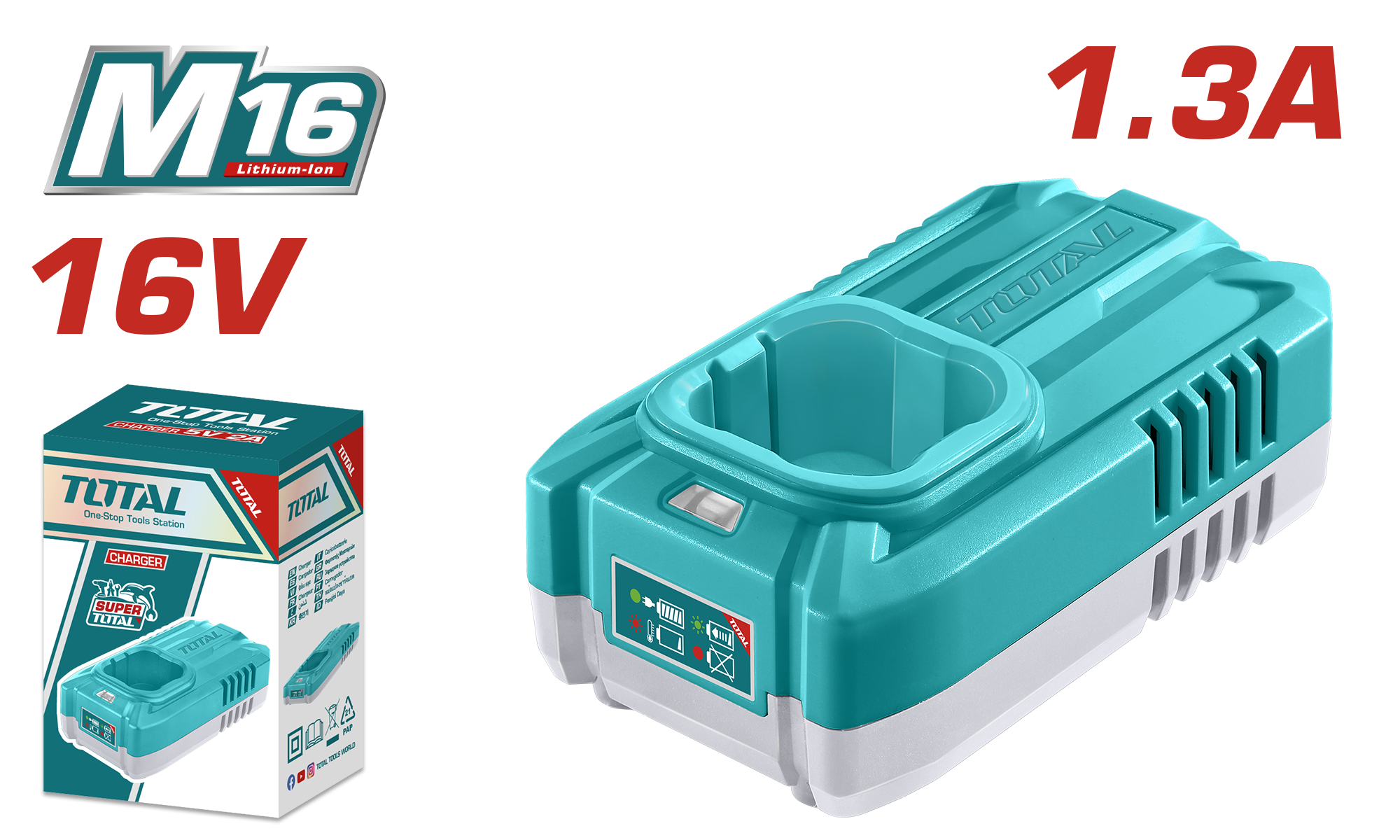 TOTAL M16 Battery Charger 16V – 1.3A Output (TFCLI1613)