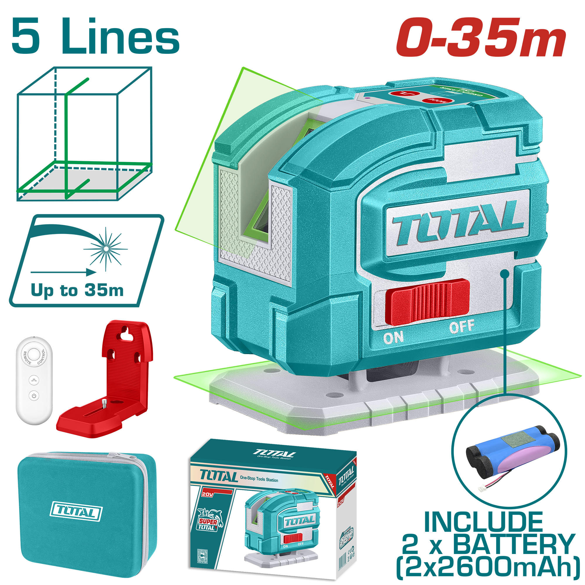 TOTAL Self-Leveling Line Laser Green 360° with Remote Control 0-35m (TLL306502)