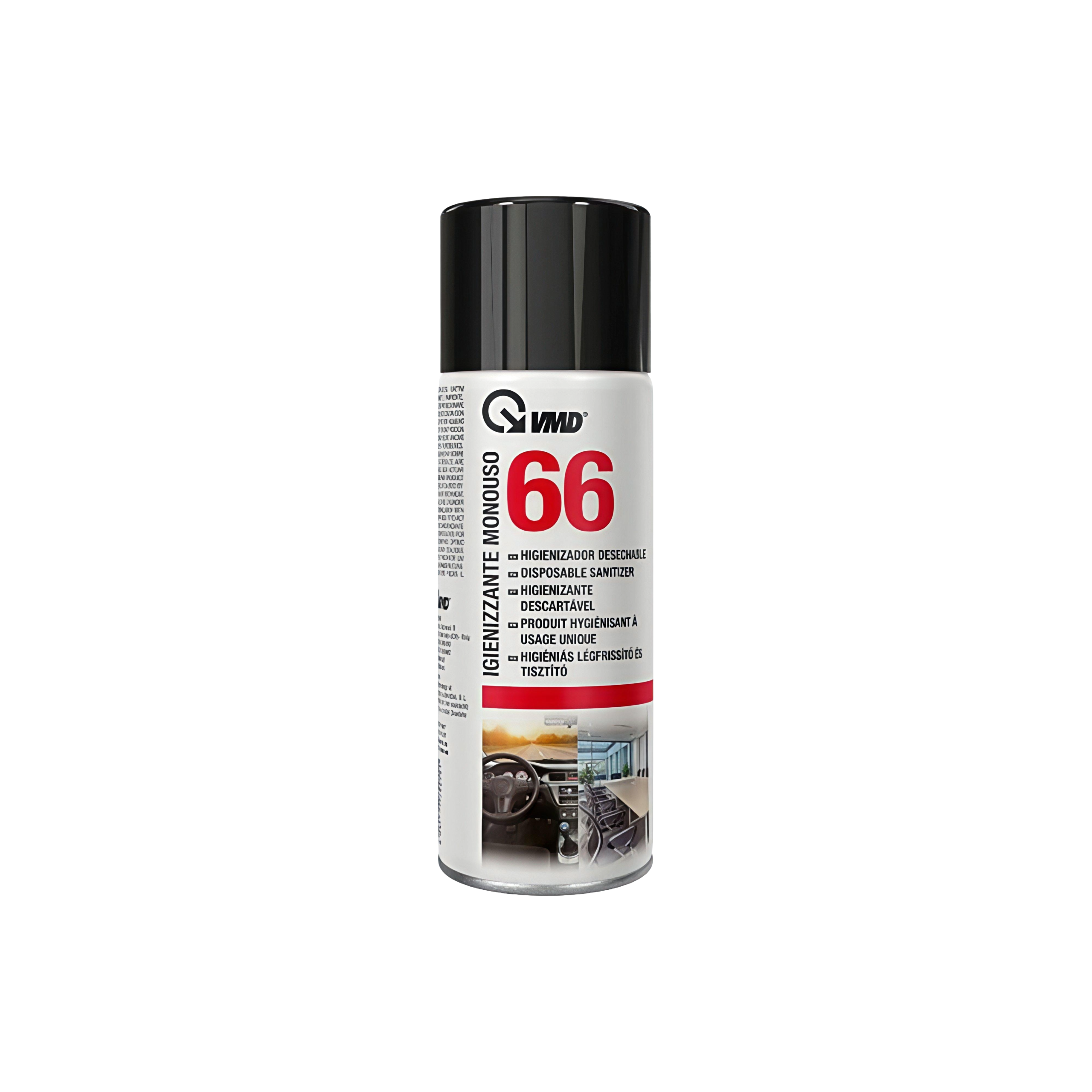 VMD 66 Disposable Hygienizer Spray is a single-use hygienizing solution designed for fast and effective air sanitation in passenger cars and small enclosed spaces. It neutralizes unpleasant odors caused by microorganisms and organic odor-forming substances, while also eliminating smoke smells and instantly refreshing the environment.